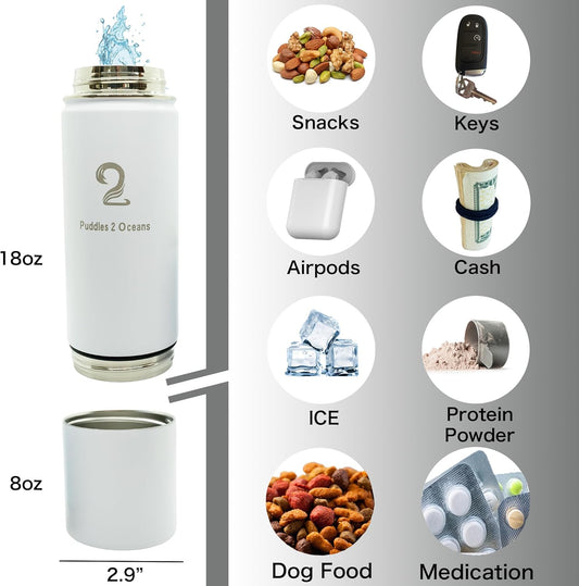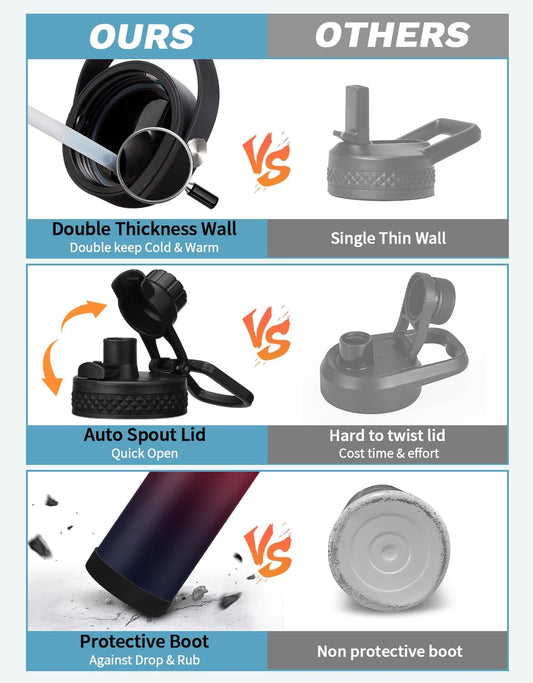Insulated Water Bottle with Storage - Stainless Water Bottle, 3 Lid Types BPA Free, Leak & Spill Proof Travel Bottle for Kids & Adults - Double Wall Tumbler Perfect for Gym, Hiking & School