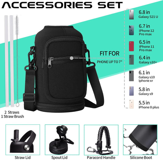 Half Gallon Water Bottle with Straw - Chug Lid, Paracord Handle, Silicone Boot, Keep Ice Cold-48H & Hot-24H, Vacuum Insulated Water Jug with Carrier Bag, 64 Oz Metal Insulated Water Bottle for Man