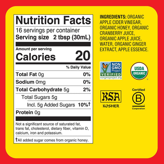 Organic Apple Cider Vinegar Cranberry Apple Blend with the Mother - 16 Fl Oz - Raw and Unfiltered